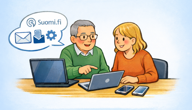 Digitukea ja –ohjausta tarjolla digilaitteiden sekä digitaalisten palvelujen käyttöön ja käyttöönottoon, esim. Suomi.fi-viestintäuudistukseen liittyvät asiat.