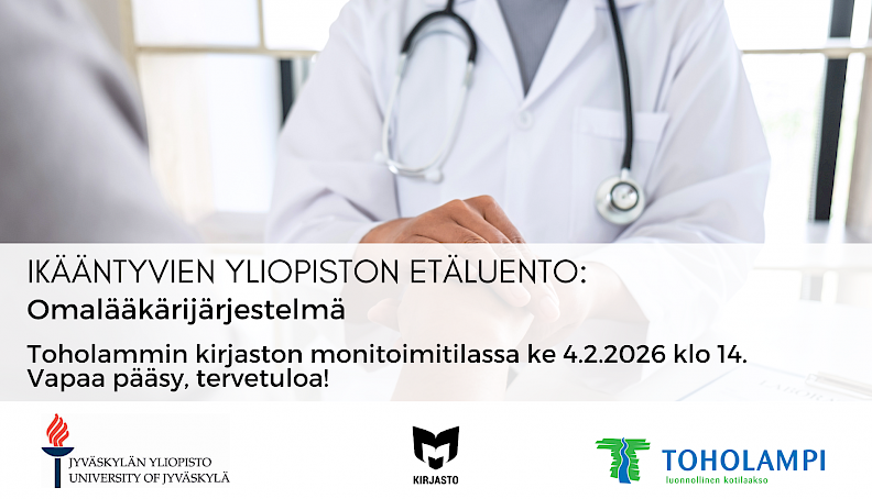 Tervetuloa seuraamaan Ikääntyvien yliopiston luentoa Toholammin kirjastoon! Luennon aiheena on Omalääkärijärjestelmä ja luennoitsijana on professori Juha Avinen Oulun yliopistosta. Luento näytetään kirjaston monitoimitilassa, vapaa pääsy!