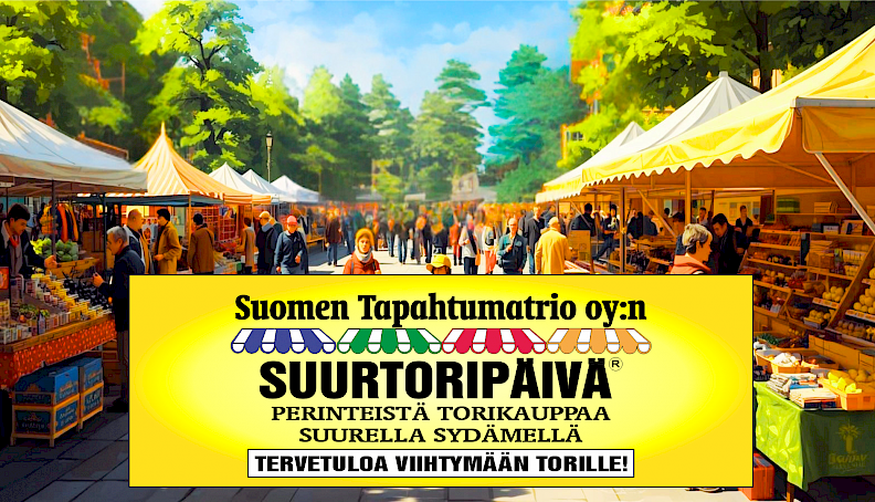 Suurtoripäivä tuo perinteistä toritunnelmaa paikkakunnalle noin 20 kauppiaan porukalla. Piha-alue täyttyy kauppiaista, kun Suomen Tapahtumatrio Oy:n Suurtoripäivä saapuu jälleen paikkakunnalle. Suurtoripäivä on jo useilta vuosilta tuttu, mukava toritapahtuma, jossa asiakkaita palvelee noin 20 torikauppiasta. Suurtoripäivä on nimensä mukaisesti isompi, kuin monilla paikkakunnilla toripäivät normaalisti, mutta pienemmät kuin markkinat. Siksipä ollaankin koottu tämä meidän oma kauppiasporukka erilaisten tuotteiden myyjistä, että saadaan tarjottua teille mahdollisimman monipuolinen kattaus.
