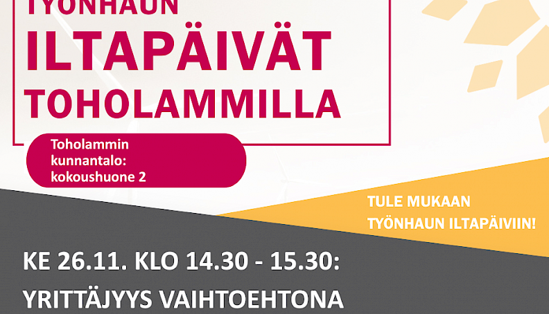 Tule mukaan työnhaun iltapäiviin! Aiheena: Yrittäjyys vaihtoehtona Tervetuloa!