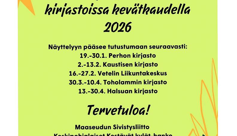 Maaseudun Sivistysliitto ja Keskipohjalaiset Kestävät kylät -hanke tuo Kaustisen kirjastoon Severi Koivuniemen kokoaman näyttelyn 2.–13.2.2026.