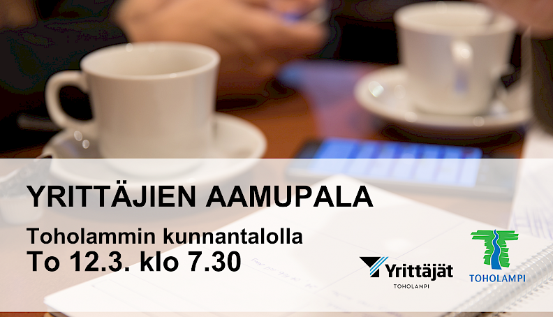 Torstaina 12.3. klo 7.30 alkaen kokoonnumme Toholammin kunnantalolle yrittäjien yhteiselle aamupalalle. Aamun teemana on rahoitus, ja luvassa on ajankohtaista asiaa sekä käytännön näkökulmia.